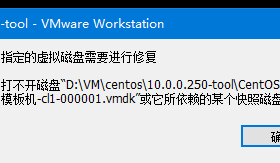 指定的虚拟磁盘需要进行修复 打不开磁盘“D:\VM\centos\10.0.0.250-tool…