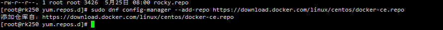 Rocky Linux 9 默认没有 Docker CE 包,需要添加 Docker 官方仓库: