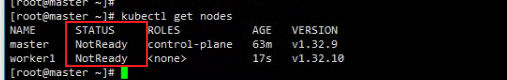 检查一下: (这里四 not ready 状态,我们还需要设置网络插件)