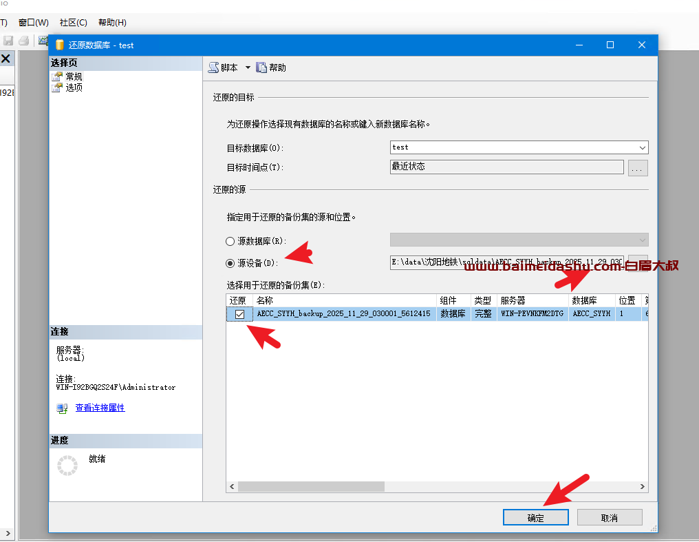 选择数据源为 ,bak